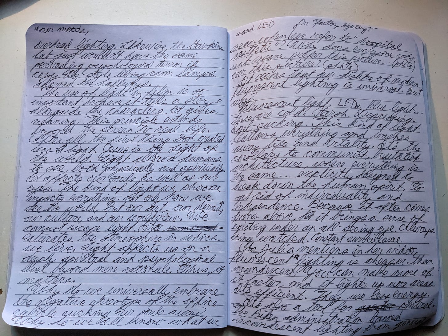 I first started thinking about this idea that incandescent light is better than LEDs when I found a video in my YouTube feed from Julia James Davis over at The War On Beauty, titled “Heaven Or Hell on Earth: The Aesthetic War of Lighting”. Intrigued by the title and already inclined to agree with whatever Julia would say, I watched the video….and found myself aggressively nodding and scribbling notes. Julia articulated exactly what I’ve sensed for years but haven’t had the time to put into words, until now.
